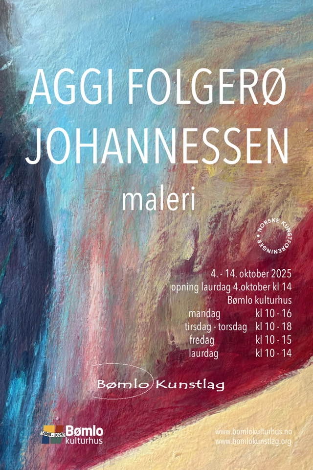 Oktober 2025. viser malerier hos Bømlo Kunstlag4.-14.oktober.Les mer på www.bomlokulturhus.no